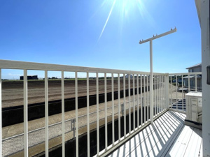 バルコニーからは海が遠望できる立地になっており、南側には庭スペースもあります。
